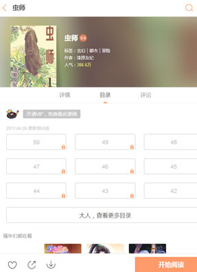 虫师 日期: 2025-06-15 10:53 分类: 最新韩漫 2025-06-15 10:53 开始阅读 微信阅读 简介: 《虫师》漫画简述:那是一群遥远且神秘的存在,明明处在比较低等的位置,却奇怪而强大,与人类熟知的动植物有着完全不同的习性。那是一群强大的生物,自古以来,人类就对它们十分的敬畏,为了便于区分,人类给了它们一个名字——虫。因为想要深入它们之间的生活,人类之中,也出了能够和它们沟通的人,而这样的人,就被称之为——虫师。 上一篇:虫生 下一篇:虫铁